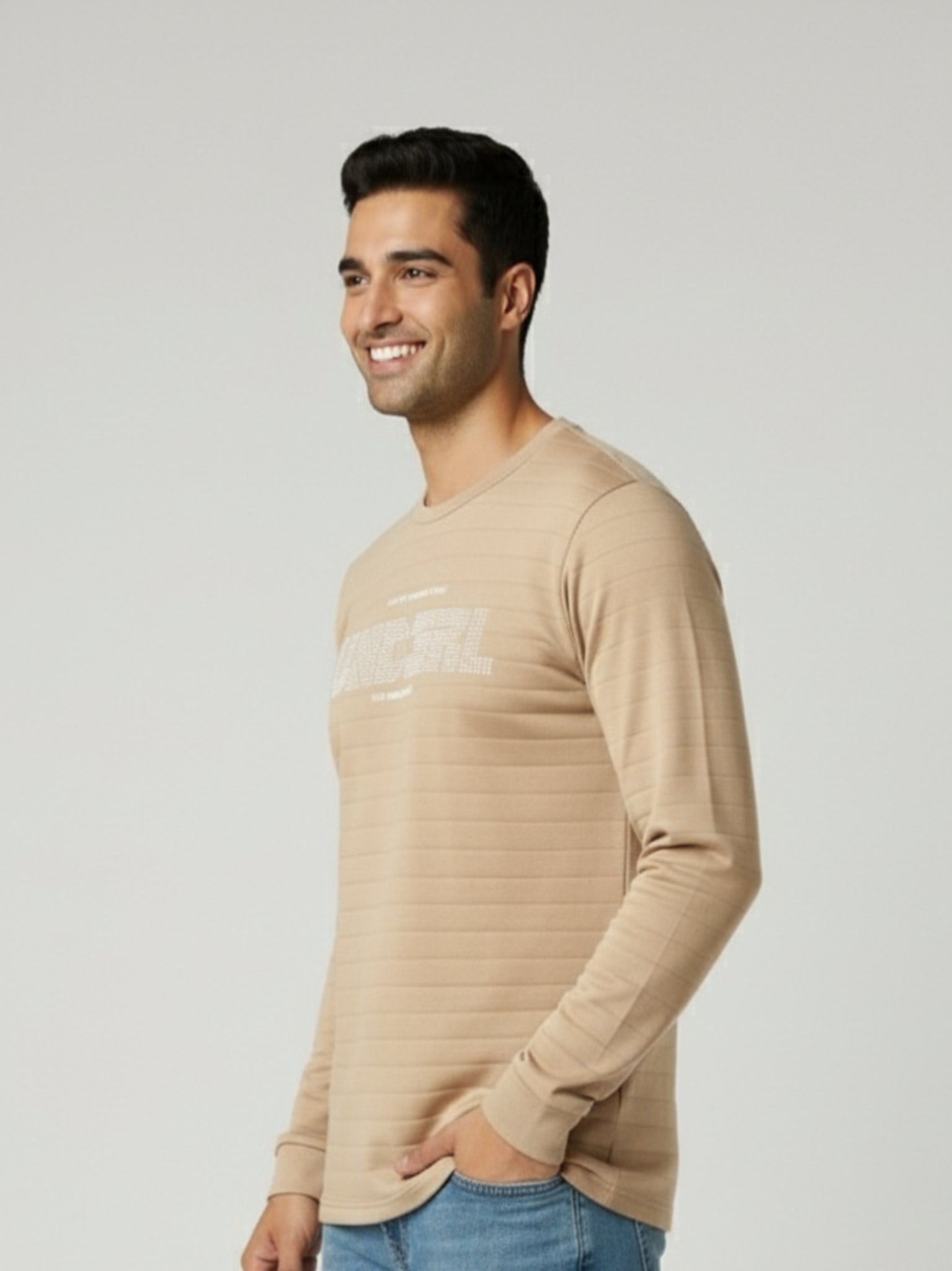 Men’s Casual Beige Graphic Printed Full Sleeve Cotton Sweatshirt